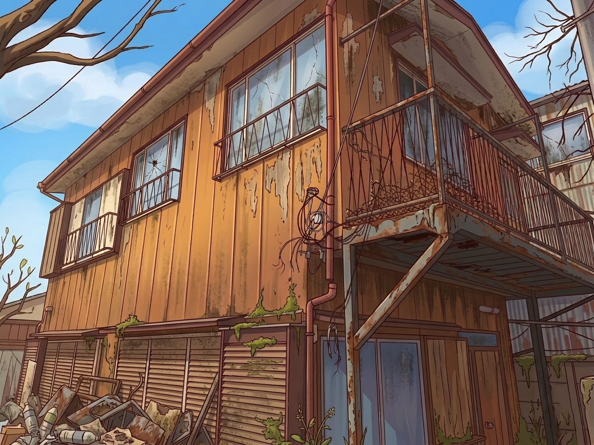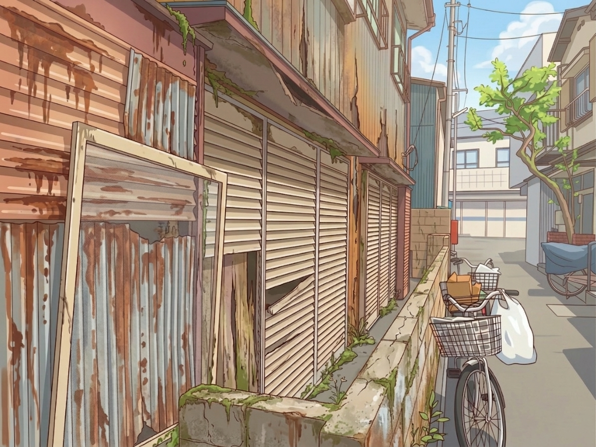 接道が幅員2mと狭く、重機の搬入や作業動線の確保が困難な戸建ておよびアパートの空き家について、隣地所有者のご協力のもと建物外壁の一部を撤去させていただき、さらに敷地の一部をお借りすることで安全な作業スペースを確保しました。その結果、工程に支障なく、無事に解体工事を完了することができました。