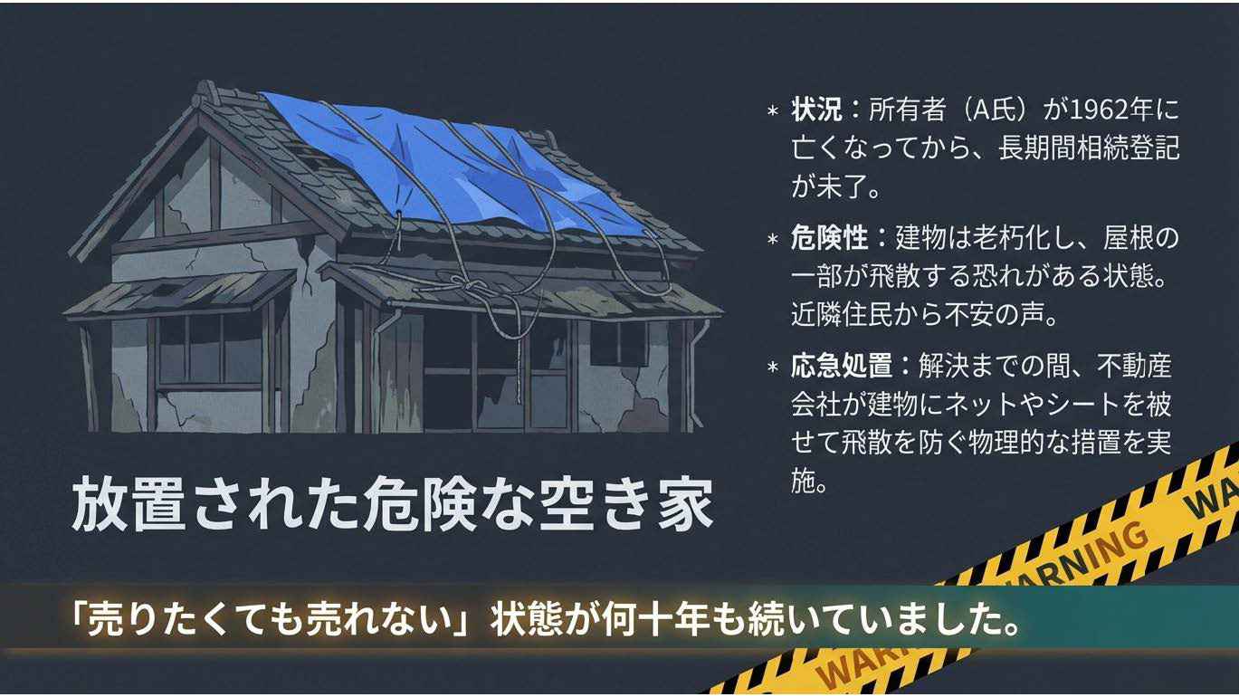 さまざまな可能性を検討しながら調査を尽くしても、決定的な手がかりは得られませんでした。しかし、彼らが相続人である以上、何も手当てをしないままでは不動産を売却できません。つまり、見つからない相続人の存在そのものが、空き家処分の大きな障害になっていたのです。